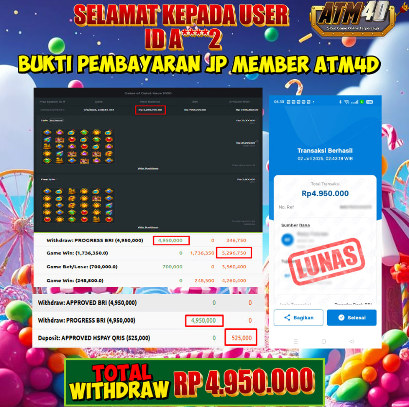 Selamat Kepada Member Yang Berhasil Mendapatkan Jackpot Dipermainan PG SOFT, Berikut Bukti Jackpot Member Di Situs ATM4D