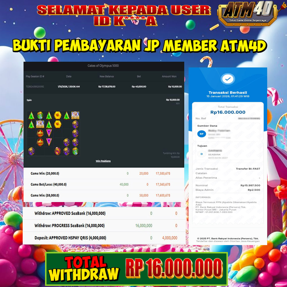 Selamat Kepada Member Yang Berhasil Mendapatkan Jackpot Dipermainan Pragmatic Play, Berikut Bukti Jackpot Member Di Situs ATM4D