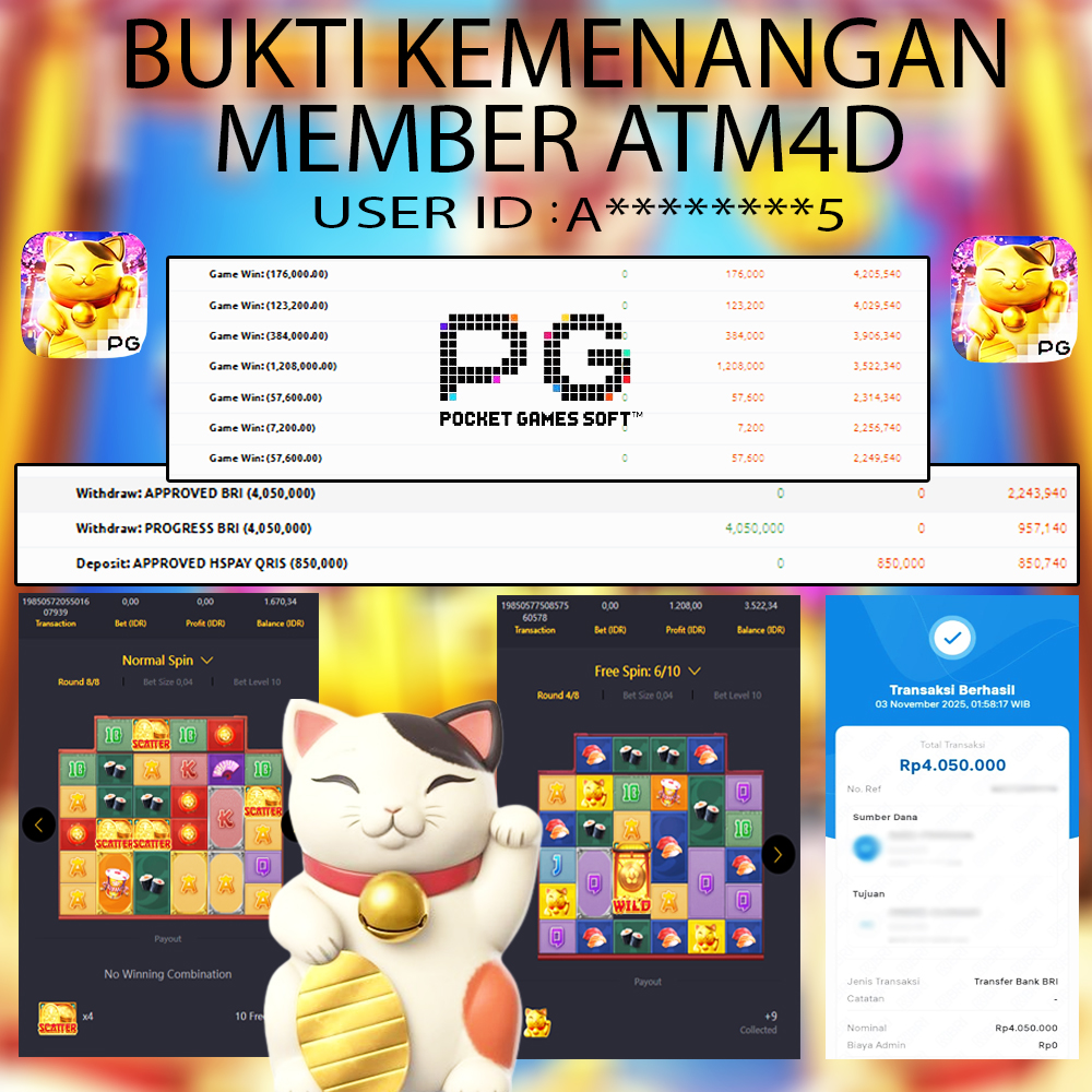 Selamat Kepada Member Yang Berhasil Mendapatkan Jackpot Dipermainan PG SOFT, Berikut Bukti Jackpot Member Di Situs ATM4D