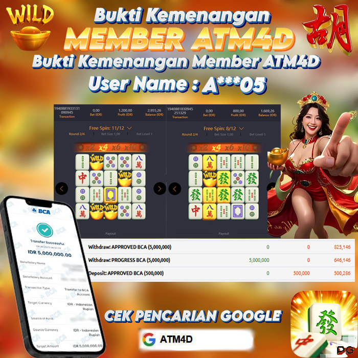 Jangan lewatkan kesempatan untuk meraih kemenangan besar. Daftar sekarang di ATM4D dan rasakan pengalaman bermain slot terbaik yang pernah ada! Putar gulungan, menangkan jackpot, dan jadilah bagian dari komunitas pemain sukses kami!