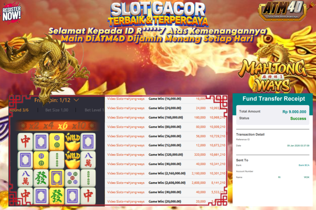 Bukti Kemenangan slot di provider JACKPOT SLOT MAHJONG WAYS 09 JANUARI 2026