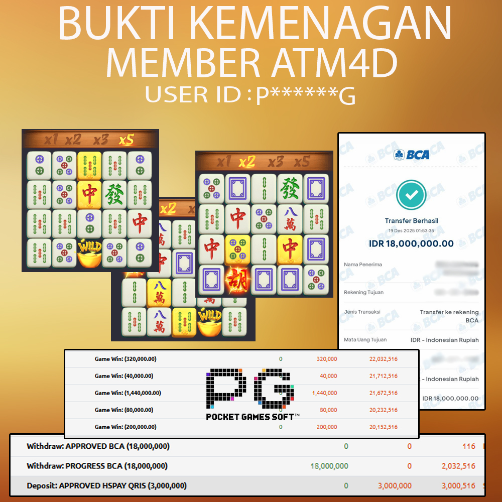 Selamat Kepada Member Yang Berhasil Mendapatkan Jackpot Dipermainan PG SOFT, Berikut Bukti Jackpot Member Di Situs ATM4D