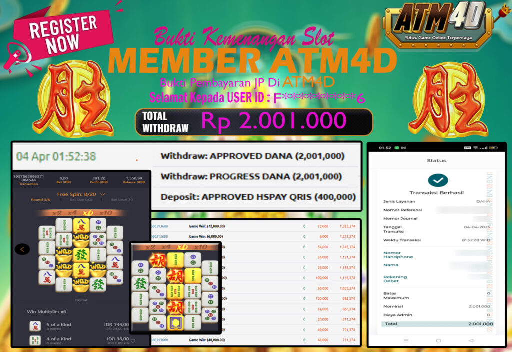 ATM4D JACKPOT SLOT GACOR GEMS MAHJONG WAYS 2, Bukti Kemenangan , Kemenangan Pragmatic Play, Menang Platform online, Situs Aman Tergacor dan Aman, Withdraw Berapapun Pasti Di Bayar Langsung, Maxwin Slot Online.