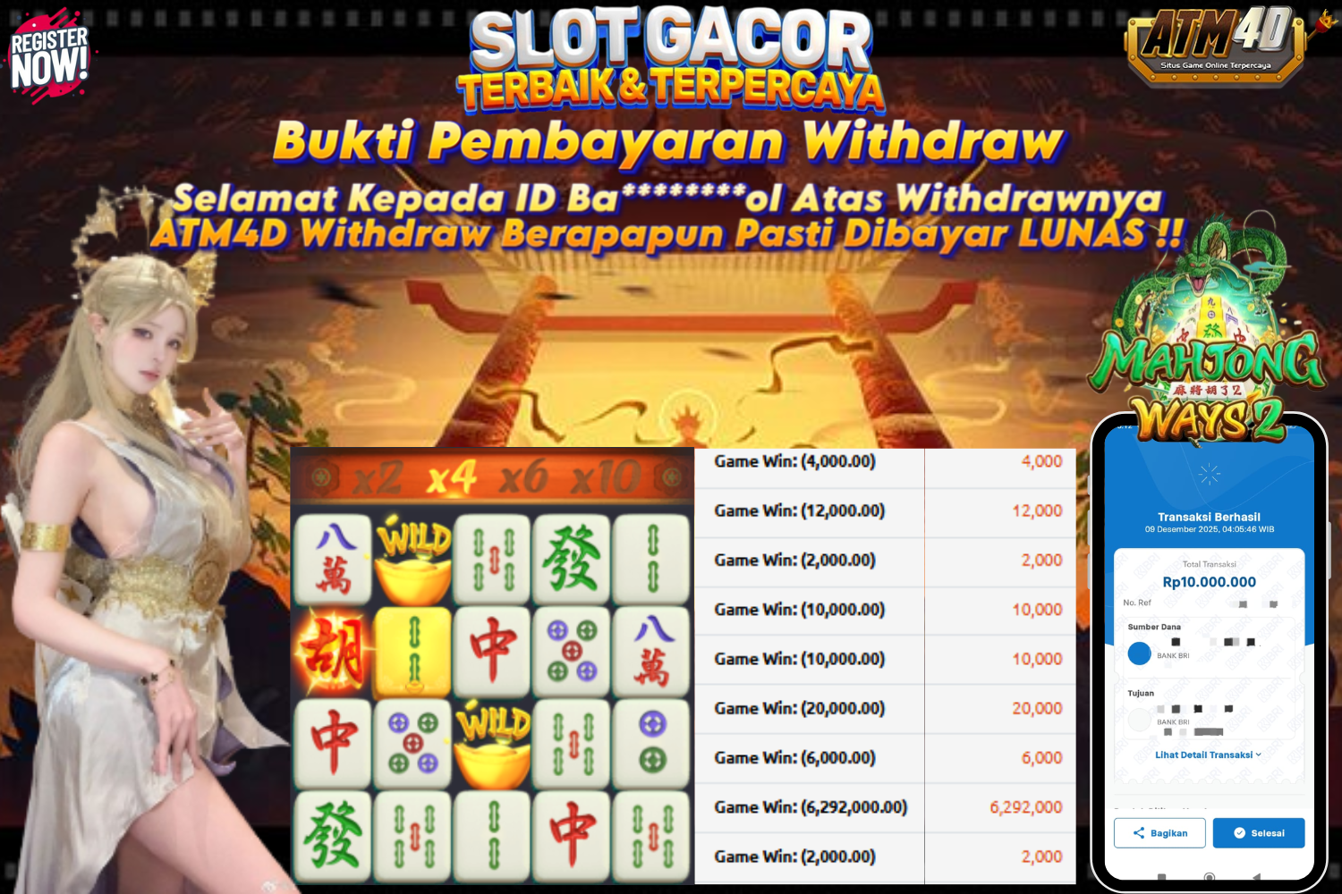 Jangan lewatkan kesempatan untuk meraih kemenangan besar. Daftar sekarang di ATM4D dan rasakan pengalaman bermain slot terbaik yang pernah ada! Putar gulungan, menangkan jackpot, dan jadilah bagian dari komunitas pemain sukses kami!