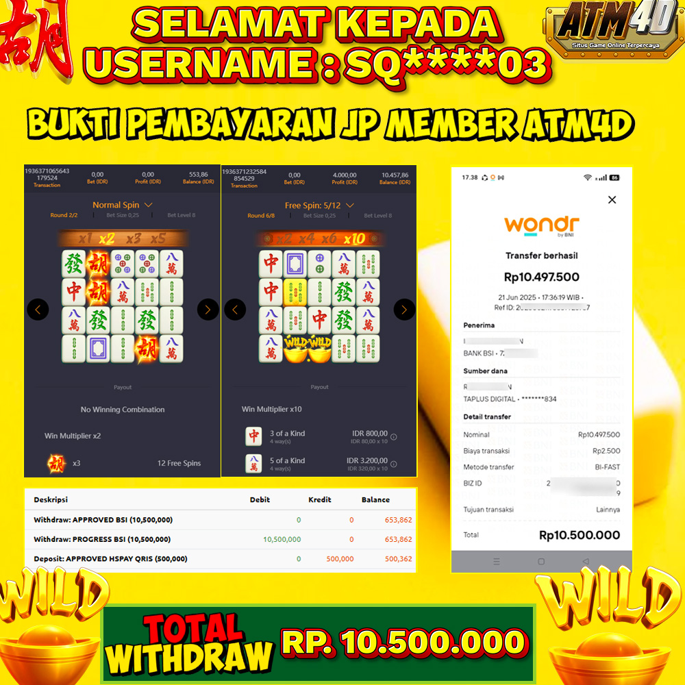 TOTAL KEMENANGAN : RP 10.500.000.-