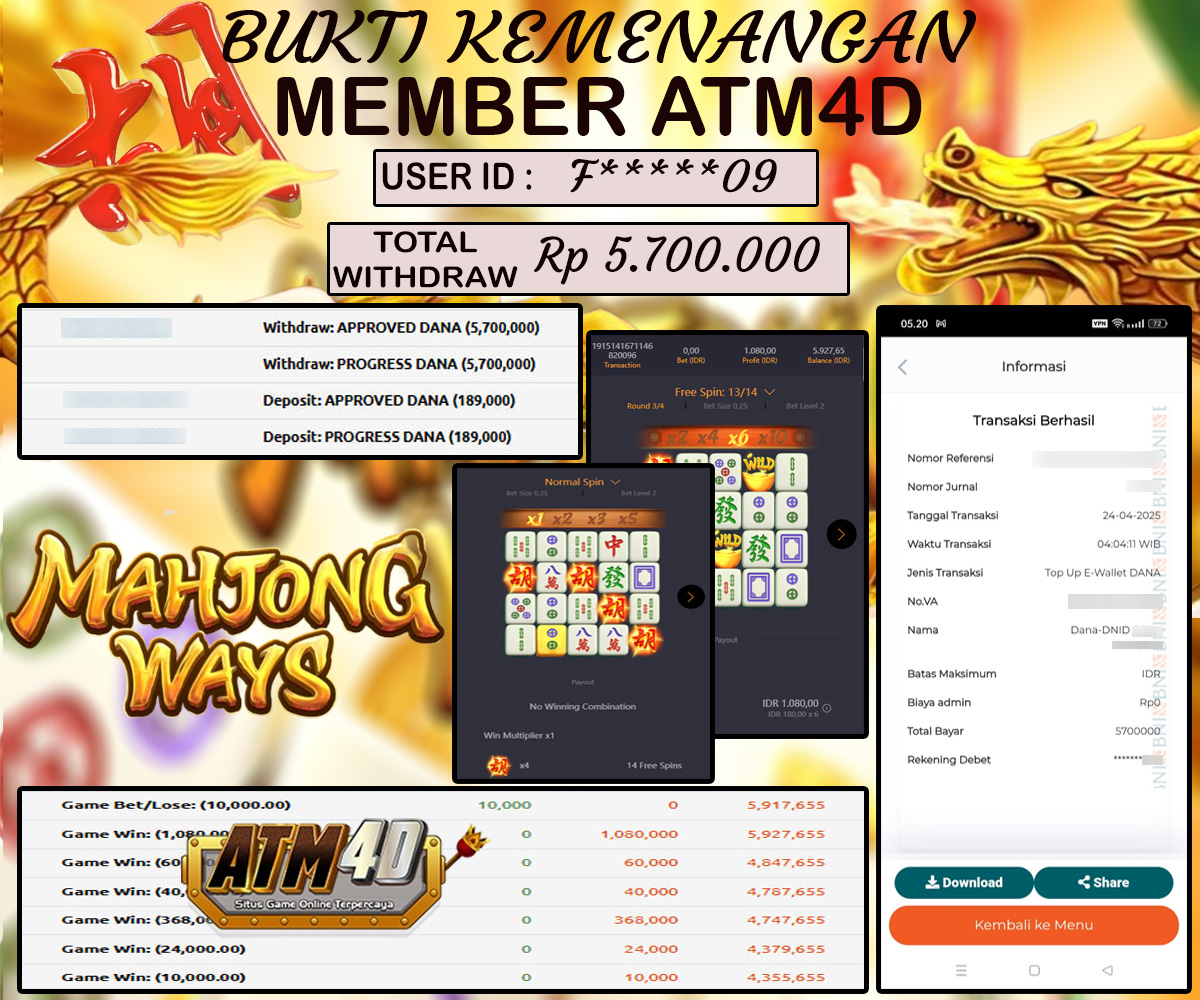 Selamat Kepada Member Yang Berhasil Mendapatkan Jackpot Dipermainan PG SOFT, Berikut Bukti Jackpot Member Di Situs ATM4D