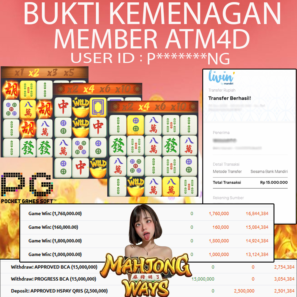 Selamat Kepada Member Yang Berhasil Mendapatkan Jackpot Dipermainan PG SOFT, Berikut Bukti Jackpot Member Di Situs ATM4D