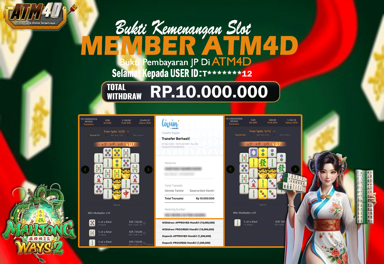 Selamat Kepada Member Yang Berhasil Mendapatkan Jackpot Dipermainan PG SOFT, Berikut Bukti Jackpot Member Di Situs ATM4D