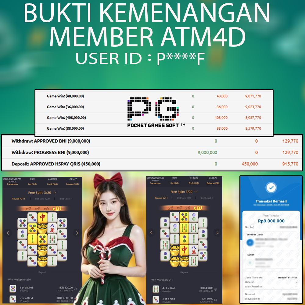Selamat Kepada Member Yang Berhasil Mendapatkan Jackpot Dipermainan PG SOFT, Berikut Bukti Jackpot Member Di Situs ATM4D