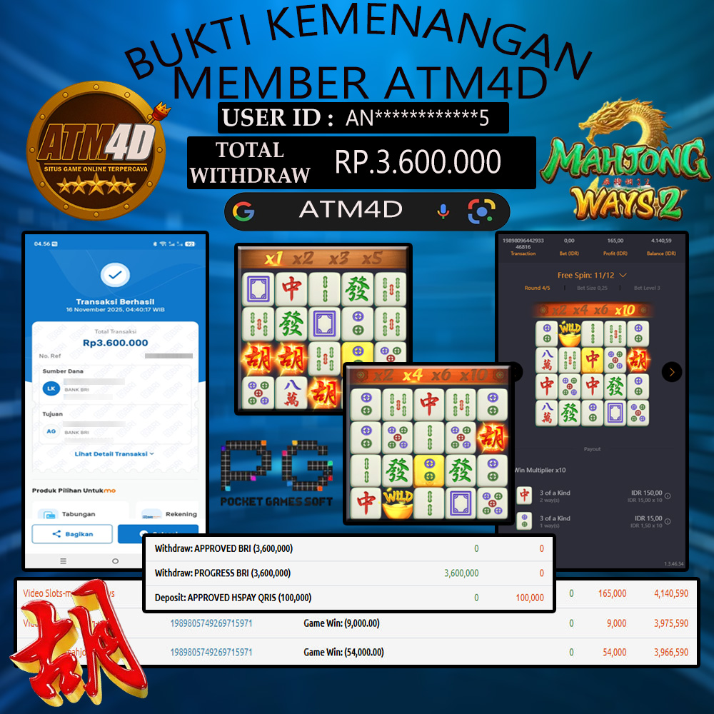 Selamat Kepada Member Yang Berhasil Mendapatkan Jackpot Dipermainan PG SOFT, Berikut Bukti Jackpot Member Di Situs ATM4D