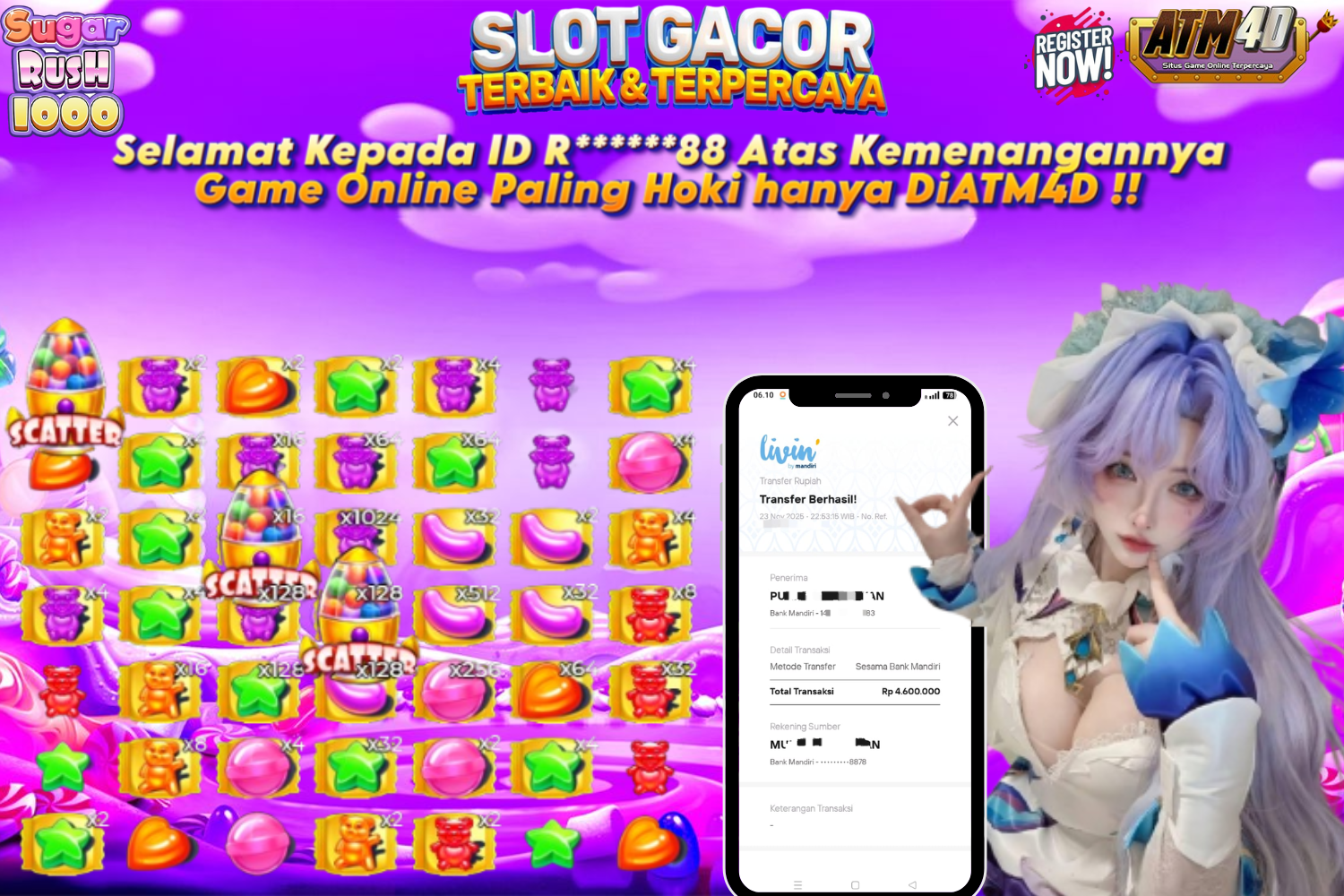 Jangan lewatkan kesempatan untuk meraih kemenangan besar. Daftar sekarang di ATM4D dan rasakan pengalaman bermain slot terbaik yang pernah ada! Putar gulungan, menangkan jackpot, dan jadilah bagian dari komunitas pemain sukses kami!