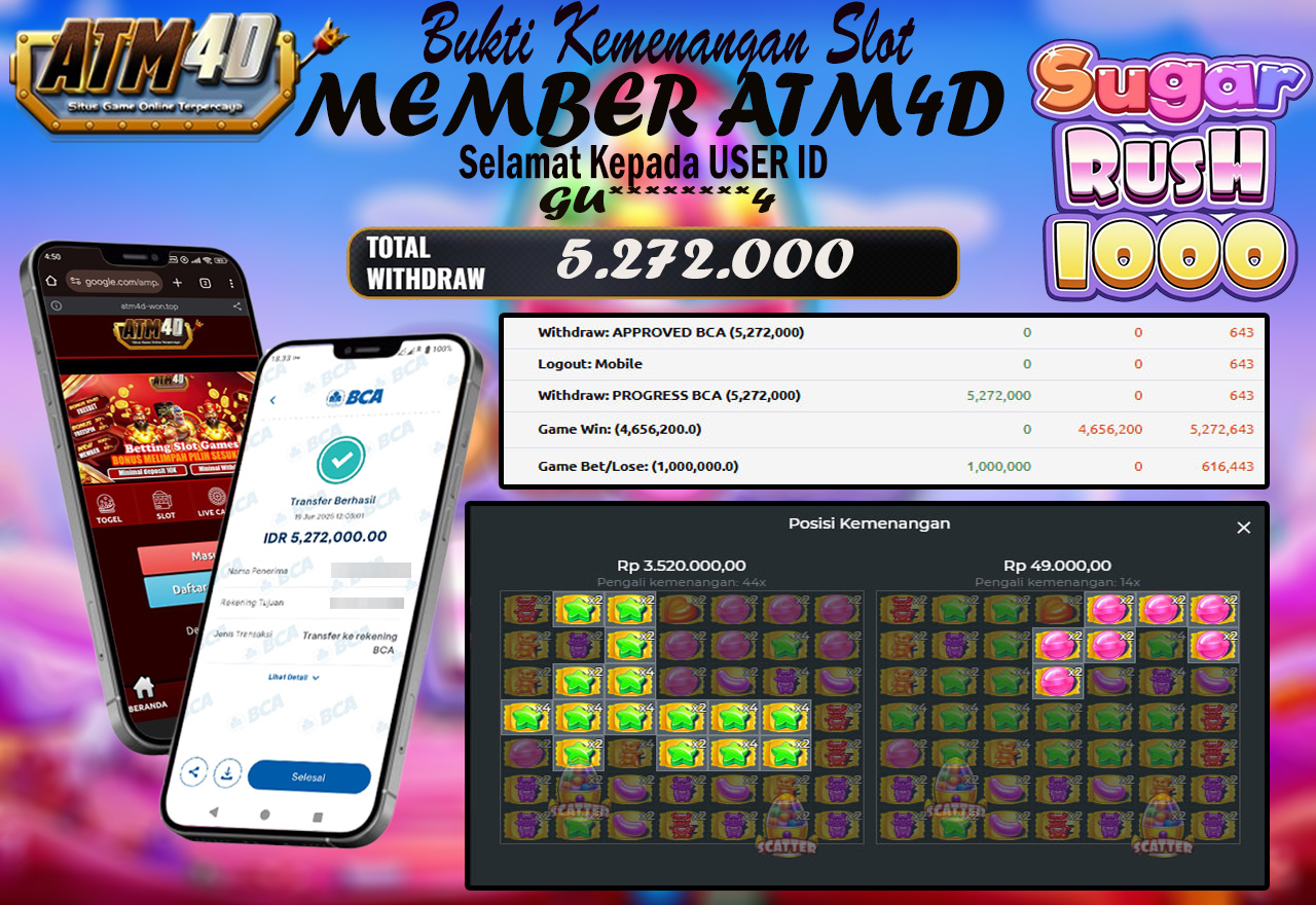 Jangan lewatkan kesempatan untuk meraih kemenangan besar. Daftar sekarang di ATM4D dan rasakan pengalaman bermain slot terbaik yang pernah ada! Putar gulungan, menangkan jackpot, dan jadilah bagian dari komunitas pemain sukses kami!